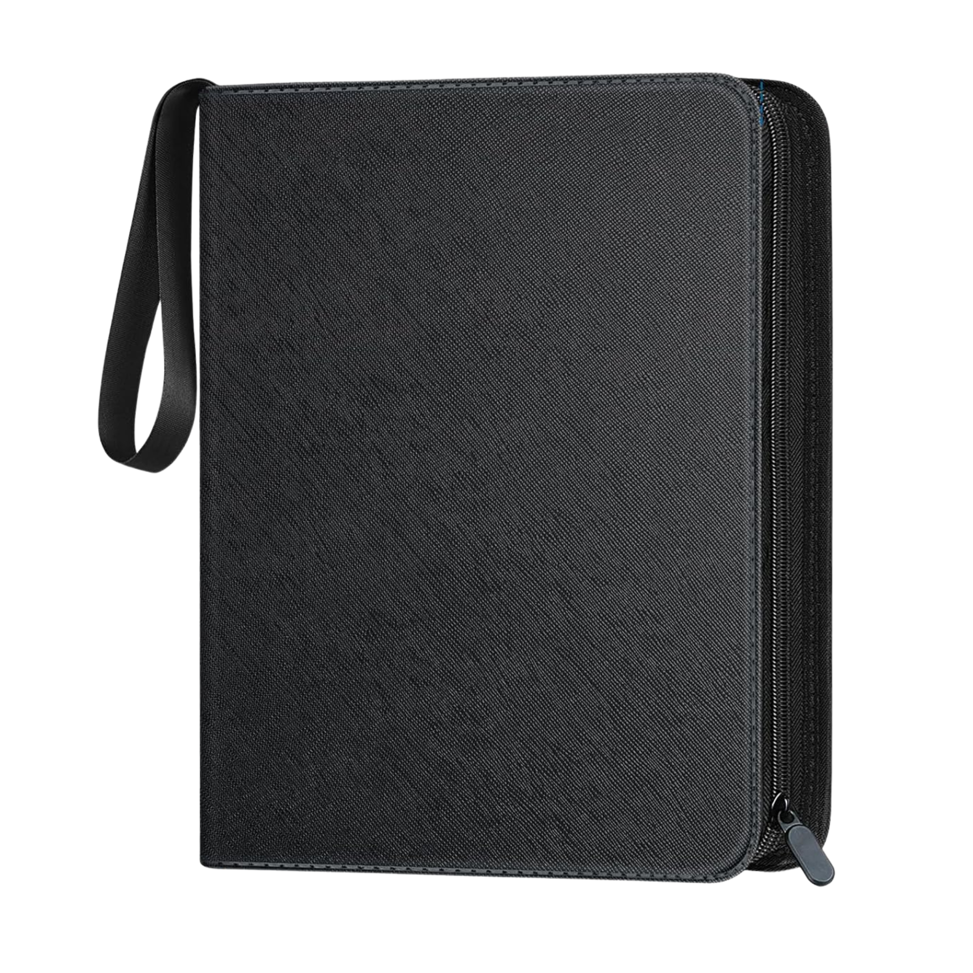 Protect and organize your cards in style with this sleek black trading card binder. Designed for collectors, it features durable materials, smooth zipper closure, and premium pages that keep your cards safe from dust, scratches, and bending. (Fits 900 cards)